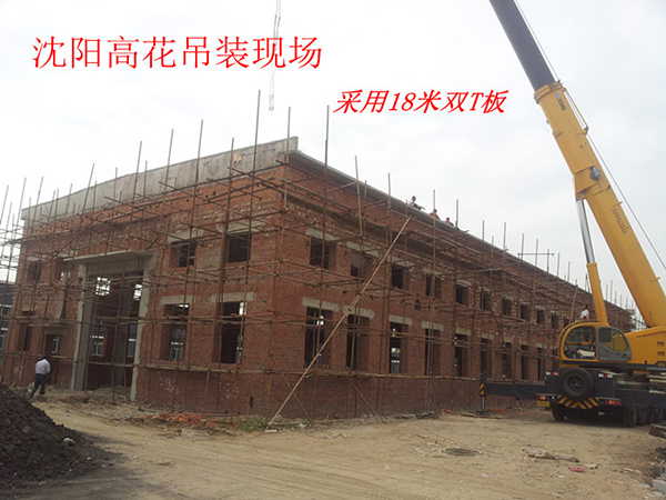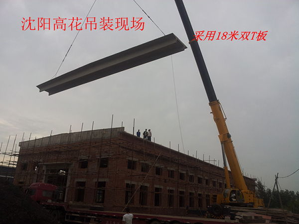 沈陽高花吊裝現(xiàn)場18米雙坡T板